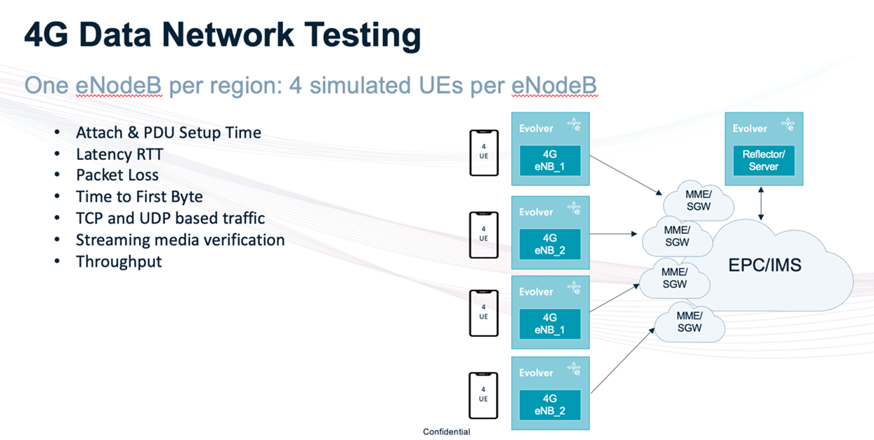 By running multiple UEs simulated by Evolver via active monitoring, it enables service providers to run multiple scenarios in parallel. For example, by simulating multiple UEs, which could be running a different service (in the same or a different cell) while switching between different channels during each session, MNOs can understand the impact on QoE. Equally, Evolver with active monitoring can simulate different loads, with fluctuating populations of UEs, each performing different simultaneous active sessions. A reflector also sends traffic back to provide end-to-end insight, emulating the servers or applications to which applications on the UE connect and allowing user plan session data to be transferred.