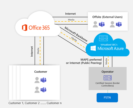 MS Teams calls can be delivered to and from fixed and mobile lines using PSTN / PLMN numbers assigned to different users, even while roaming. However, these are reached by, and the responsibility of, the operator as highlighted in Figure 1.